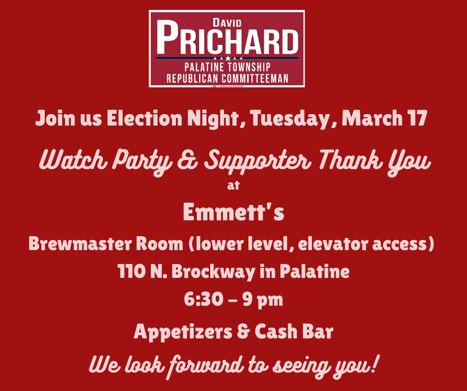 Please RSVP by February 13, 2026 either by email at info@prichardforpalatinetownship.com or by text at 847-987-1171.