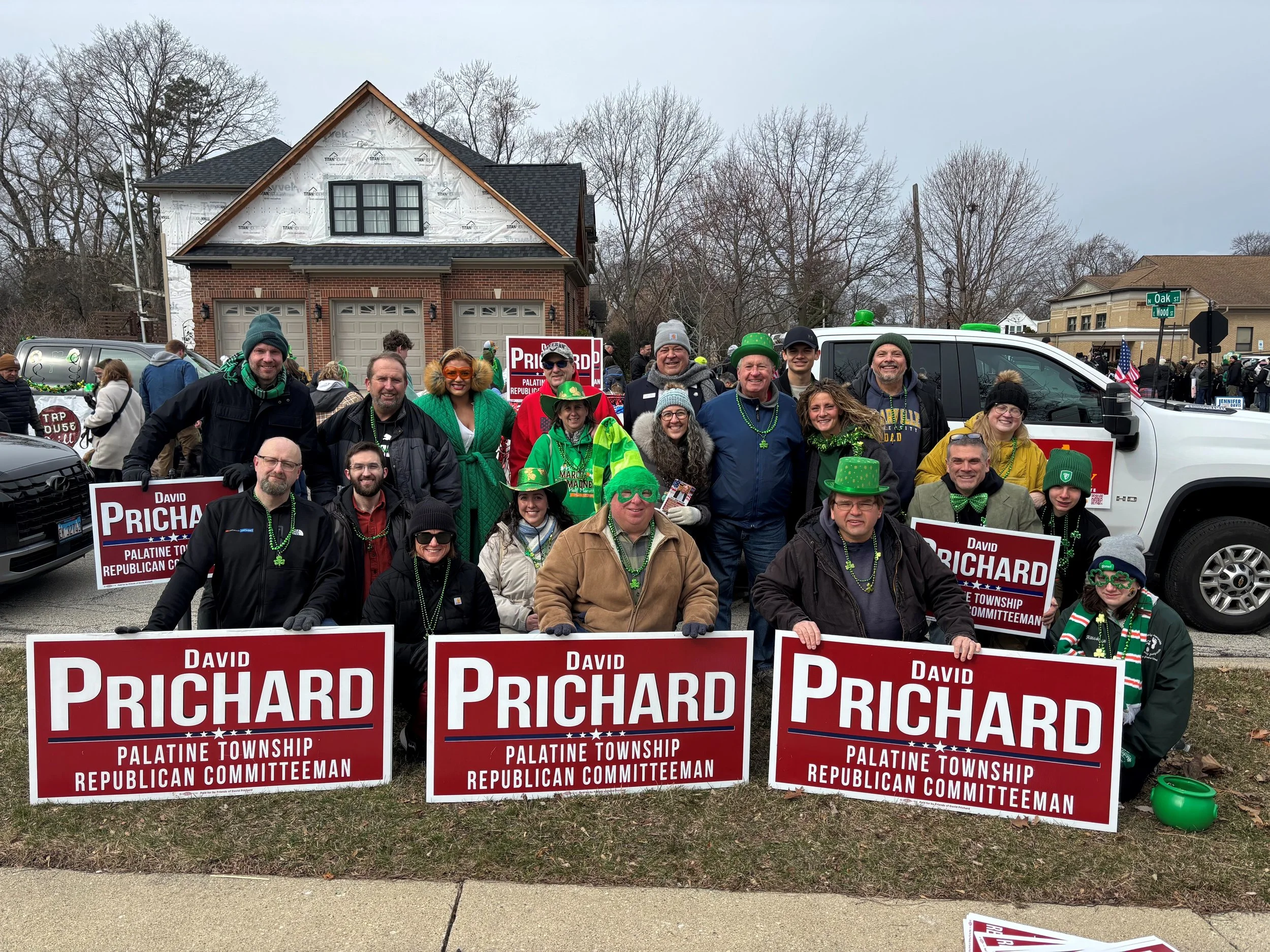 Sixteen freedom-loving Republicans from across Palatine Township braved a January evening downpour and high winds to gather in a fun-filled walk card bagging party for David Prichard, candidate for Palatine Township Republican Committeeman on the March 17 primary ballot.